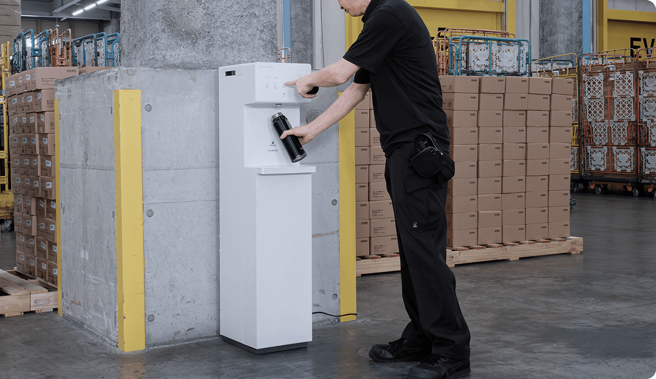 ボトルを運搬する際の燃料消費やCO2排出の削減、ボトル補充やデリバリー依頼などのサービス作業も15%ほど削減できました。
