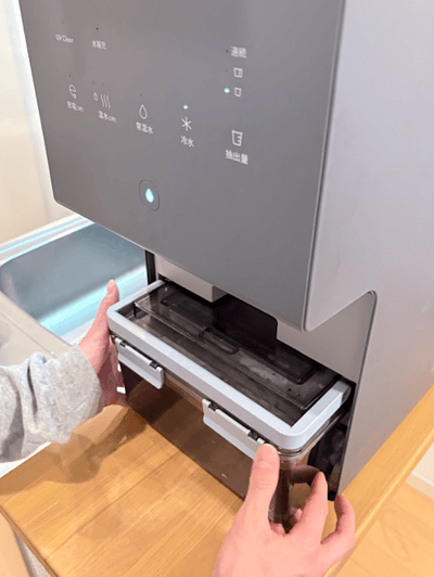 また、水道直結工事が不要でコンセントがあればどこでも設置できるため、キッチンの模様替えやリビングへの移動も自由自在な設計が便利です。